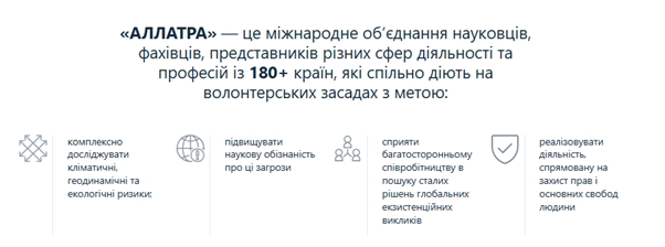 Нагадаю, що АЛЛАТРА - це міжнародне об'єднання науковців і фахівців різних сфер діяльності із 180 країн, які спільно діють на волонтерских засадах. У тому числі АЛЛАТРА реалізує діяльність, спрямовану на захист прав і основних свобод людини у всьому світі.