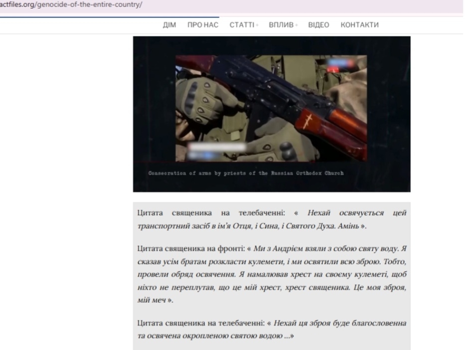 ЦИТУЮ: “Освячується знаряддя це. “В ім'я Отця, Сина і Святого Духа. Амінь. Ми з собою взяли з Андрієм святу воду. І я сказав всім братам розкласти автомати. І ми освятили всю зброю. Тобто чин освячення провели. Я намалював на своєму автоматі хрест, щоб не плутали, що це
