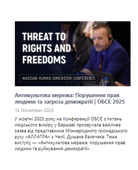 Вони чесно, з фактами доводять до відома широких кіл громадськості інформацію щодо гібридних атак на демократію. Розслідування щодо діяльності антикультової мережі РАЦИРС набирає обертів. Величезна кількість доказів втручання фсбшної структури в формування громадської думки в країнах Європи та Америці. ЗМІ, агенти впливу серед журналістів, політиків, представників релігій – все задіяно.
