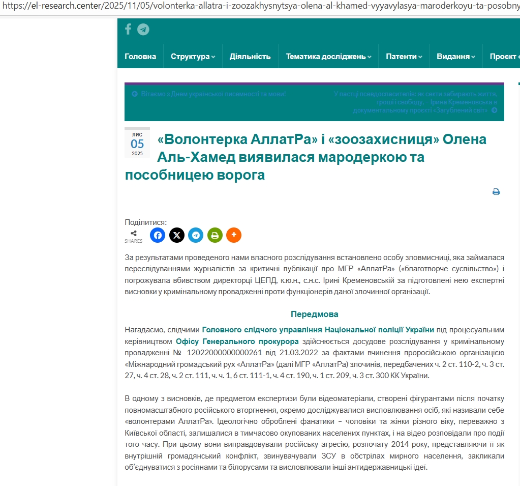 За власними визнаннями Кременовської, вона переслідує рух АЛЛАТРА з 2015 року, та діє не одна. Чи сформована в неї мережа агентів впливу в силових структурах та серед політиків? - питання риторичне