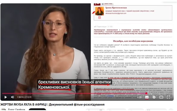 Але вона мабуть “забула” повідомити суспільство,що вона усю свою "незалежну" в лапках журналістську і “експертну” кар'єру присвятила медіа булінгу десятків організацій, бізнесів, релігійних і наукових рухів, експертів релігієзнавців, захисників тварин. Кременовська, діє точно із методичкою кремля, сіє рашистські наративи та дезу. Тобто Кременовська рясно, і з насолодою поливає брудом і відвертим лайном усіх, хто небажаний кремлю - її кураторам. Вона, як істинний агент кремля, малює псевдо-експертні висновки, що один в один копіюють риторику її російського гуру та москальського куратора Дворкіна.