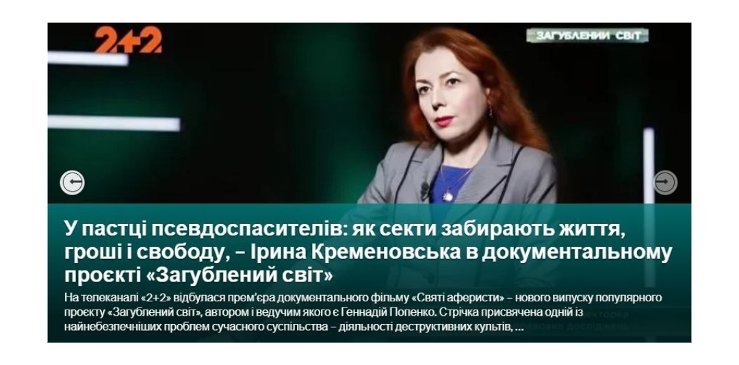 Ірина Кременовська роками виходить в ефіри українських телеканалів як «експертка», хоча сама фігурує у кримінальному провадженні за ст. 161 ККУ щодо розпалювання ненависті та пов’язана з фсбшною сектою РАЦИРС.