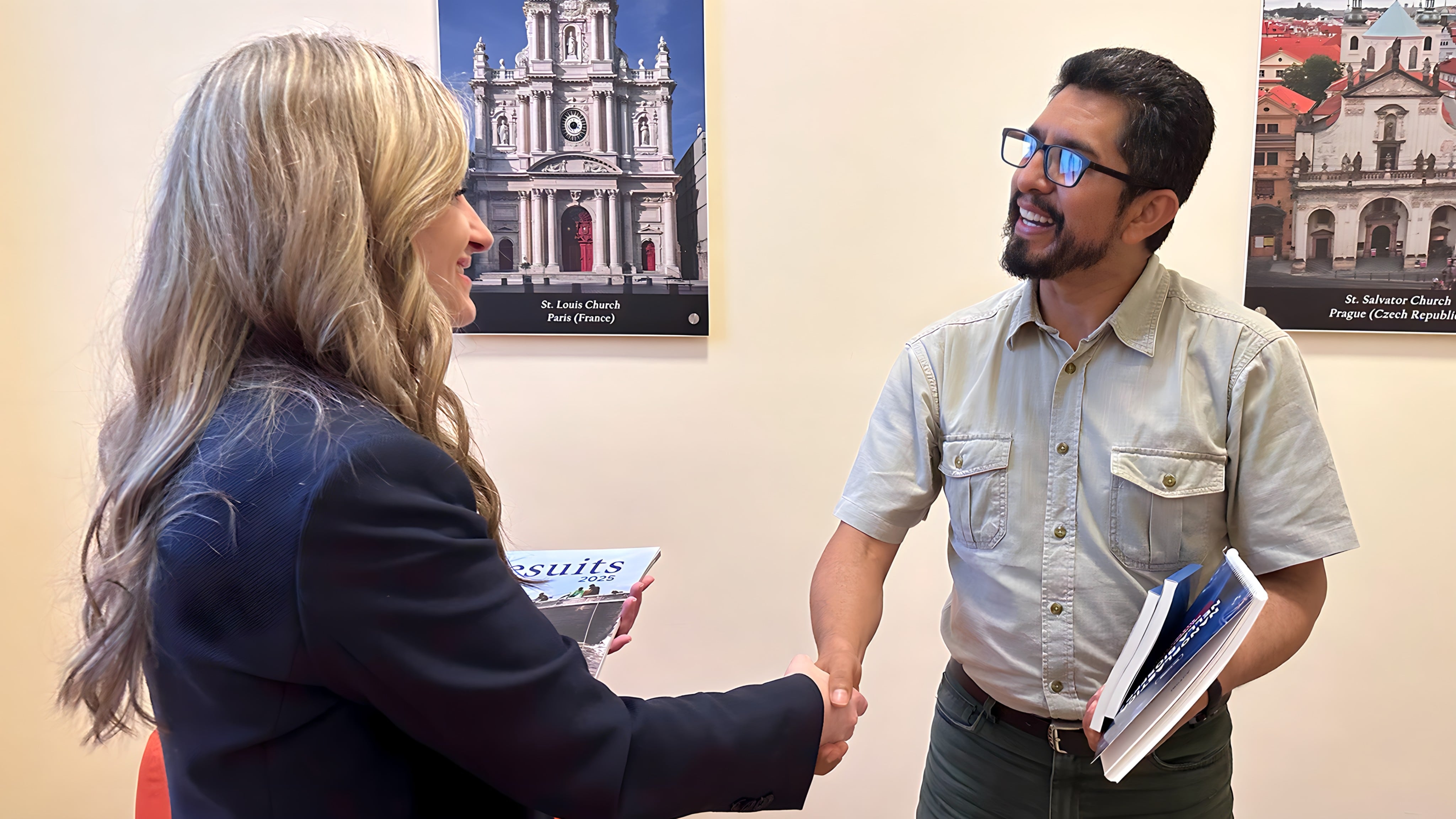 Марина Овцинова, президент Міжнародного громадського руху «АЛЛАТРА» та Преподобний отець Бернардо Леон Меркадо Варгас, настоятель Товариства Ісуса в Болівії на зустрічі в Римі Генеральної курії Товариства Ісуса