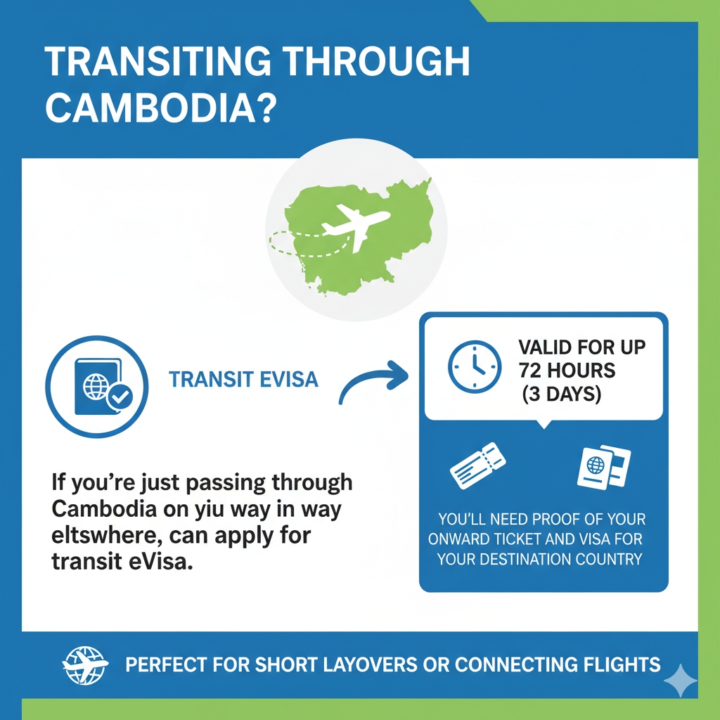 If you’re just passing through Cambodia on your way elsewhere, you can apply for a transit eVisa.