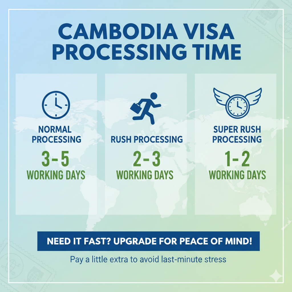 Cambodia offers different processing speeds depending on how soon you need your visa: