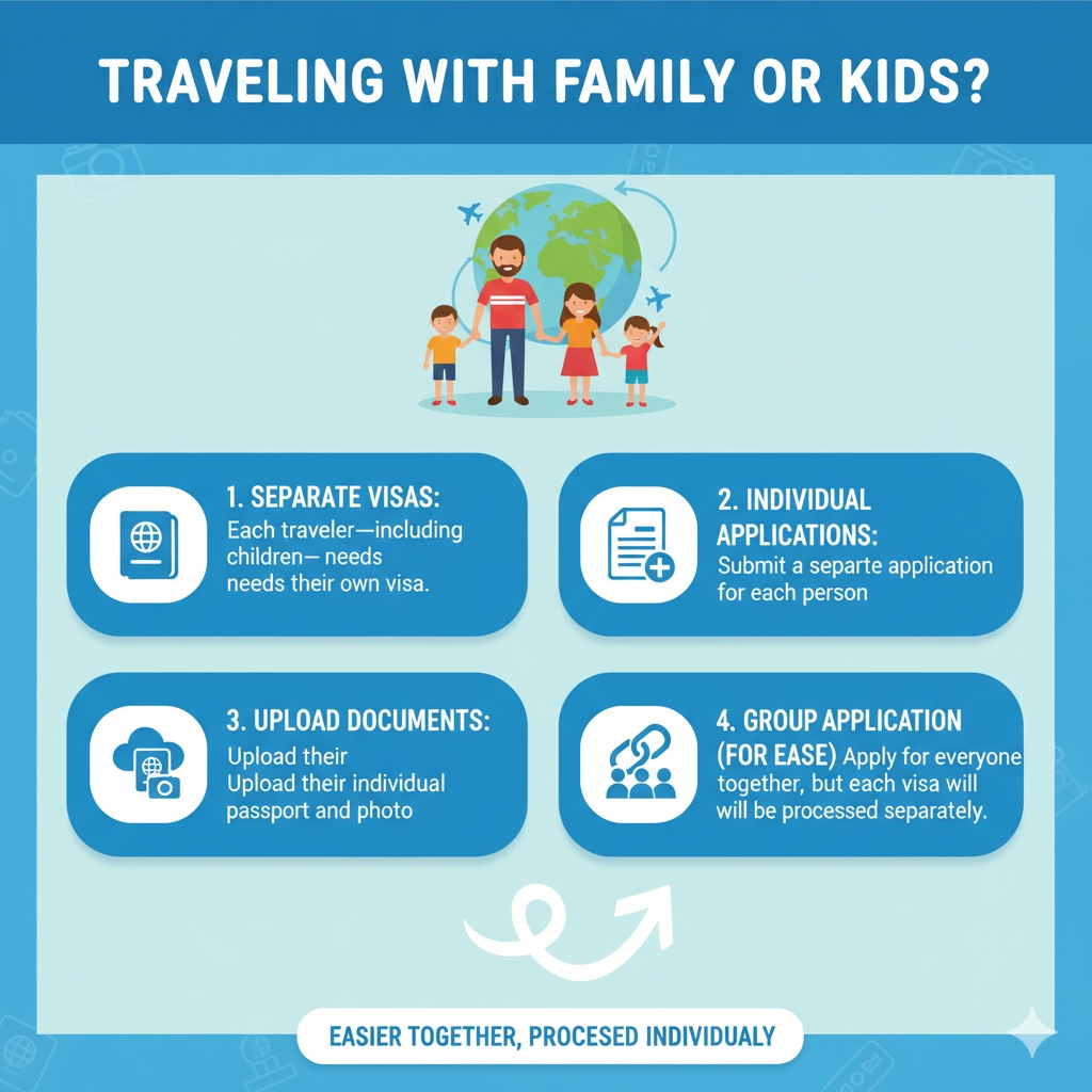 Each traveler—including children—needs their own visa.
