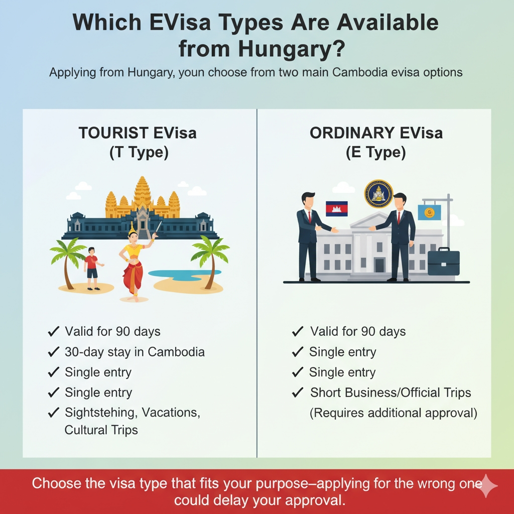 When you apply from Hungary, you can choose from two main Cambodia eVisa options: