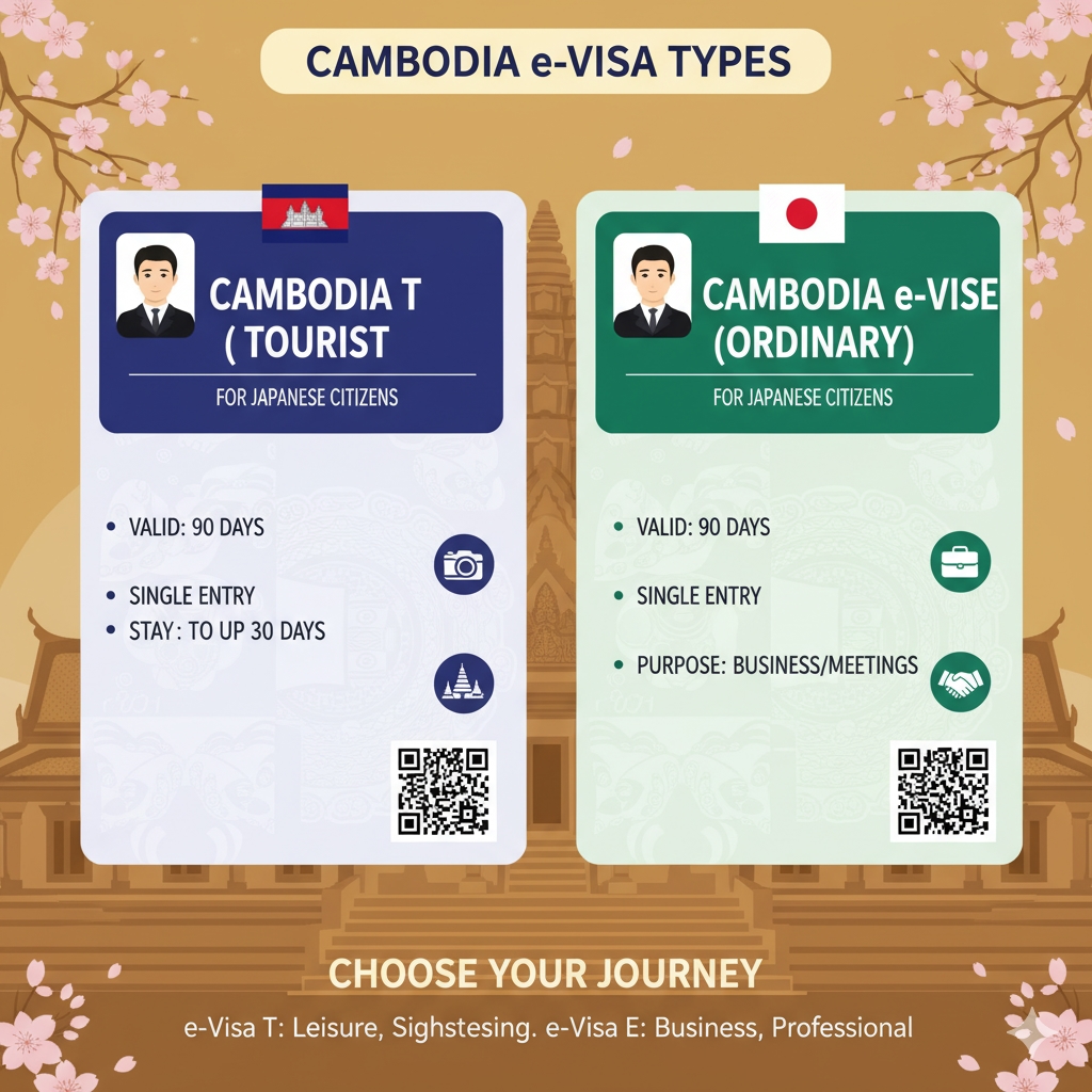 When you get a Cambodia eVisa from Japan, you could either go for two major categories of the visa. The eVisa kind is a reflection of the purpose and the duration of the visit in question.