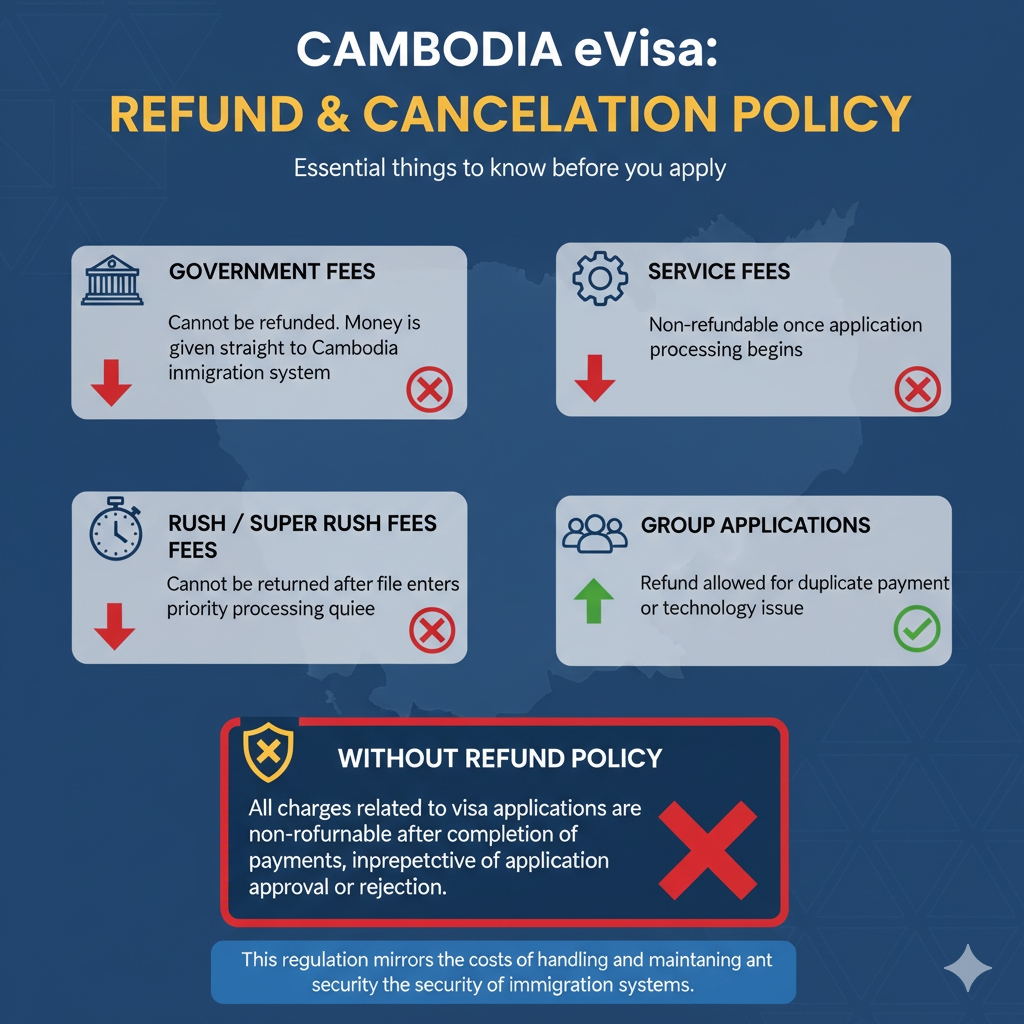 Essential things to know about your Cambodia eVisa application refund policy before you decide to apply.