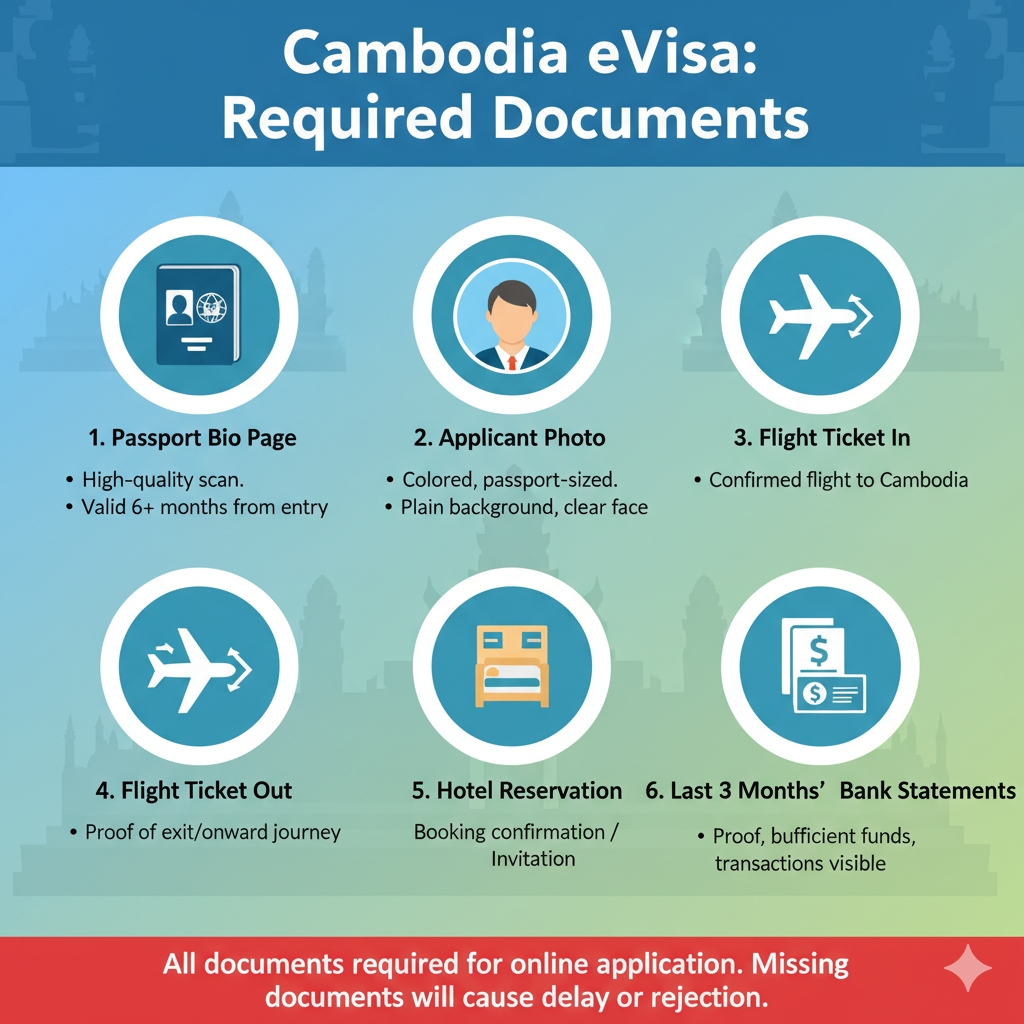 Proof that you have enough money to fund your trip and stay in Cambodia.