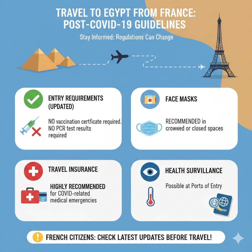 Most of the travel restrictions relating to COVID-19 have been lifted in Egypt, yet travelers in France should keep up with the latest information on the entry requirements.