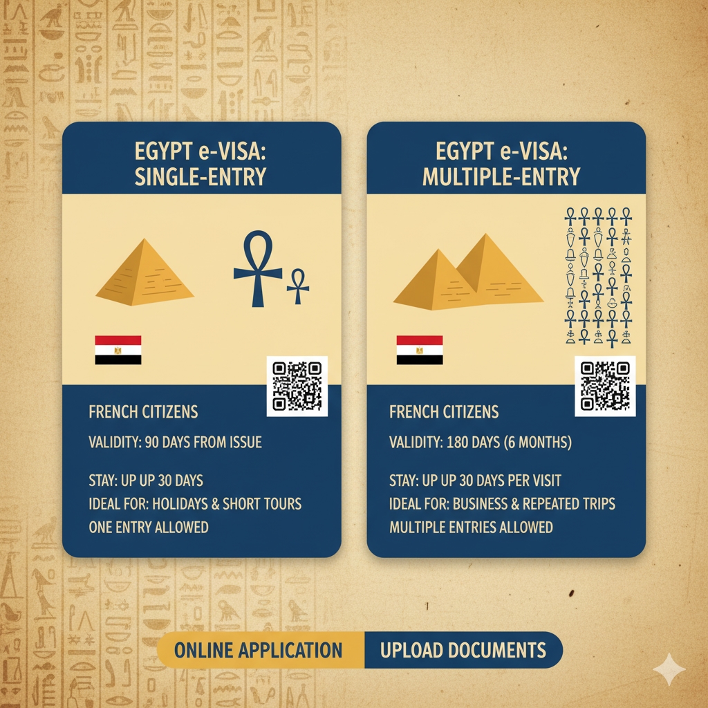 Egypt e-Visa types offered to French citizens.