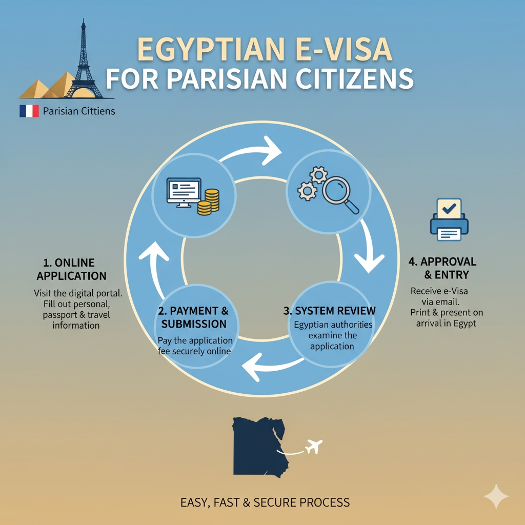 Application of the Egyptian e-Visa in France by Paris citizens.