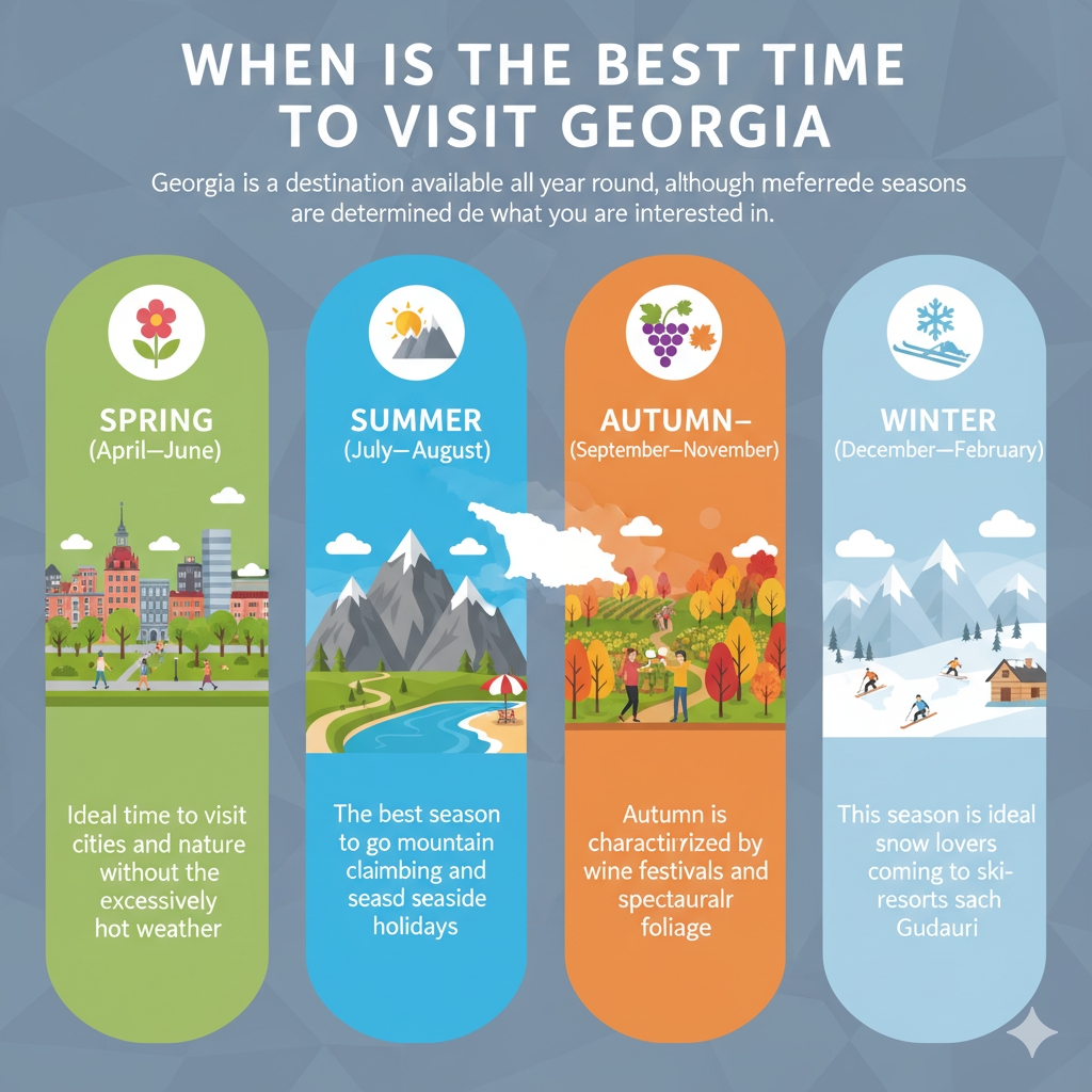 Georgia is a destination which is available all year round, although the most preferred seasons are determined by what you are interested in: