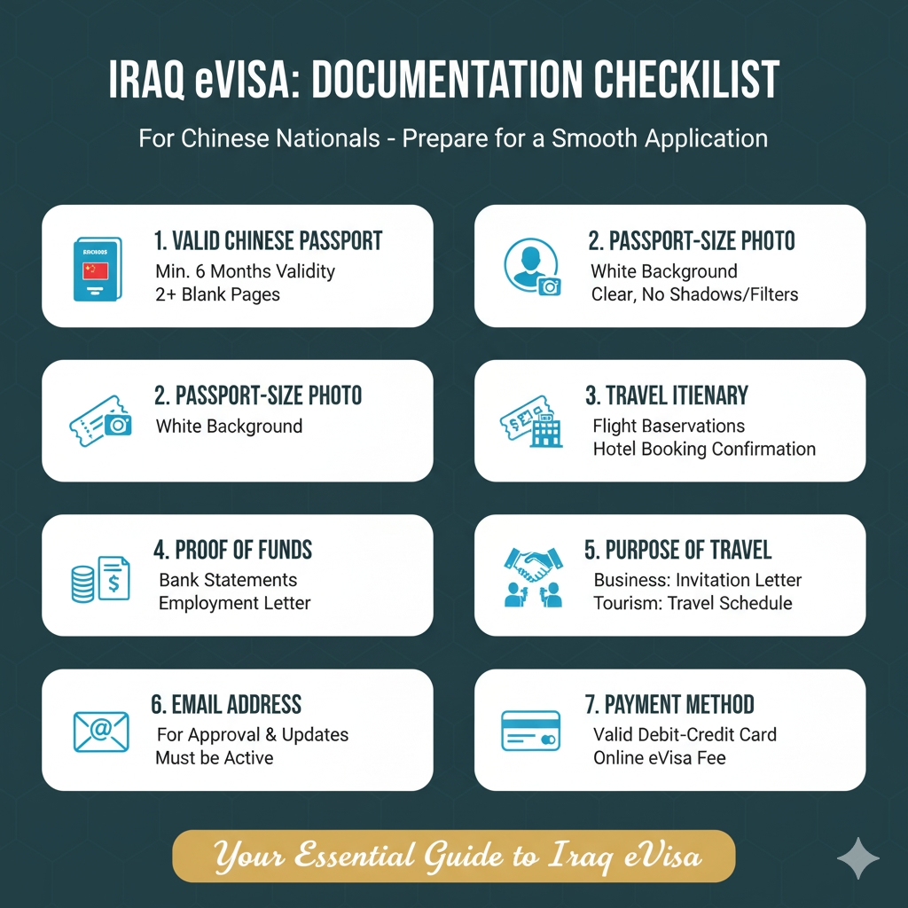 Bank statements or employment letters to indicate that you will be able to sustain yourself in Iraq.