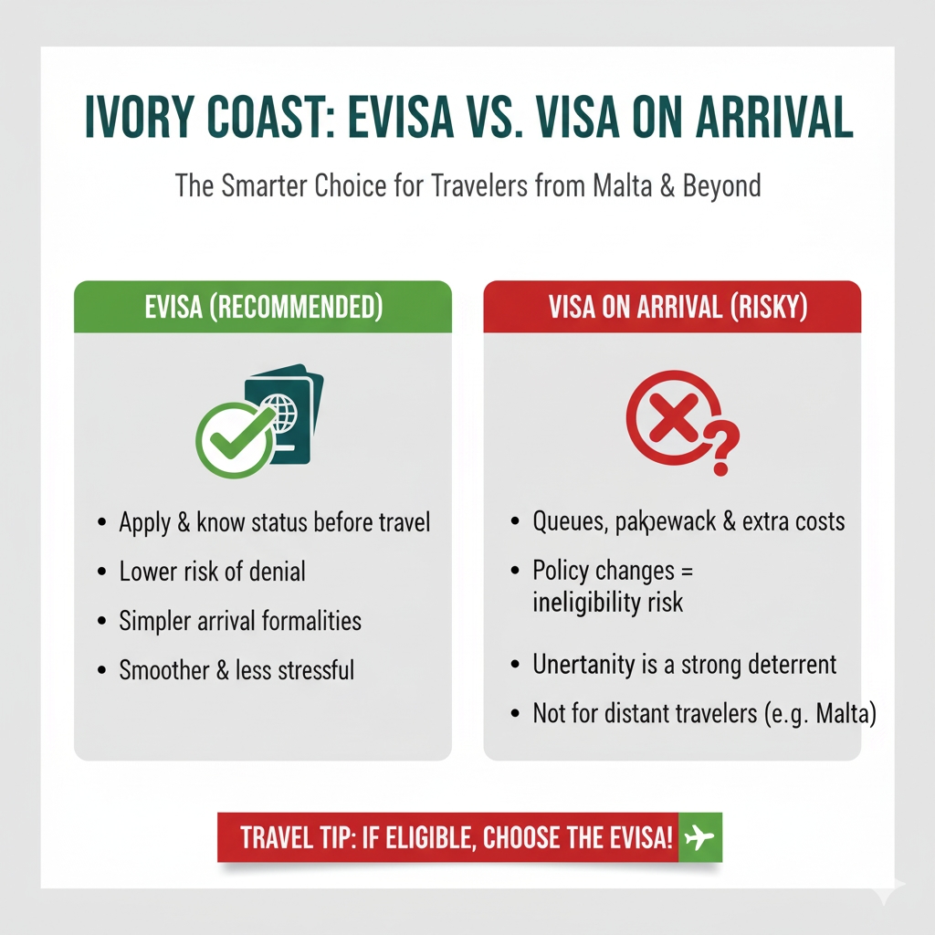 Which is better, the Ivory Coast eVisa or visa on arrival?