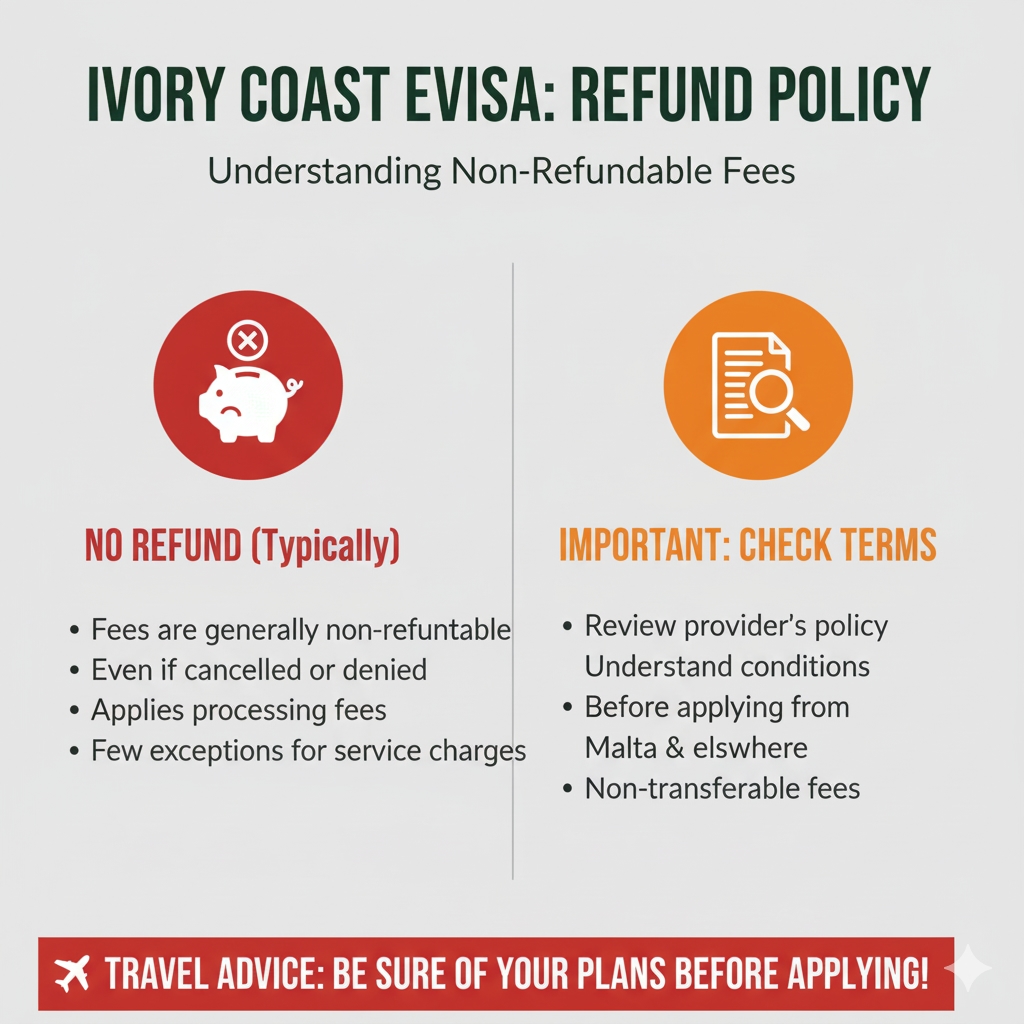 Will I get my money back if I cancel my Ivory Coast e-visa?