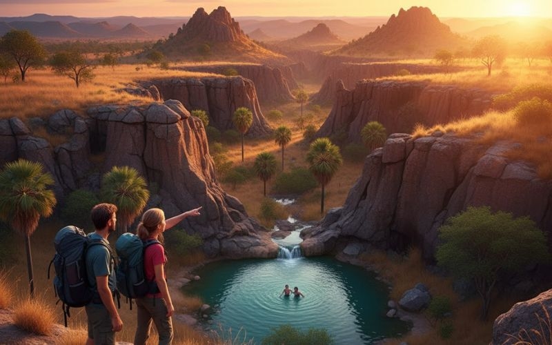 Visitors can hike across arid savannahs, catch sight of ring-tailed lemurs lazing about in the shade, or splash into gleaming pools of water nestled among the rocks. During the sunset, the cliffs radiate red and golden hues, making it a moment that appears to exist outside of time.
