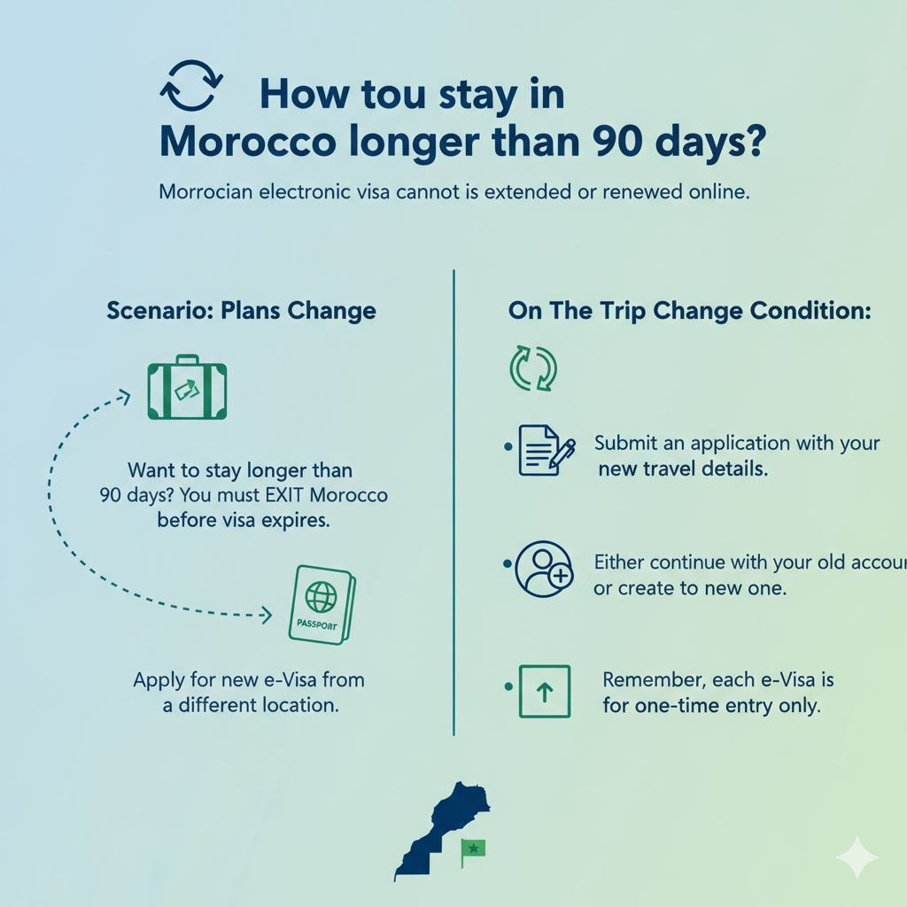 The Moroccan electronic visa is not able to be extended or renewed via online means.