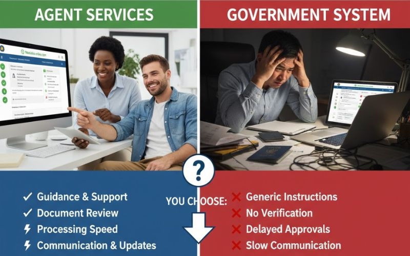 Here’s a clear, point-by-point comparison showing why using a professional agent like (Namibia-eVisa.com) is a far better choice than applying through the government system when submitting your Namibia eVisa from Anguilla:
