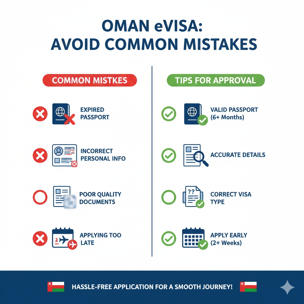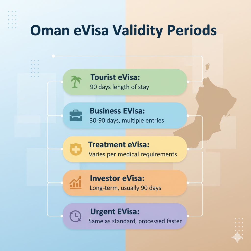 There are various types of eVisa to Oman depending on the aim of your visit. It is important to choose the appropriate type to ensure that compliance is not compromised and there are no delays.