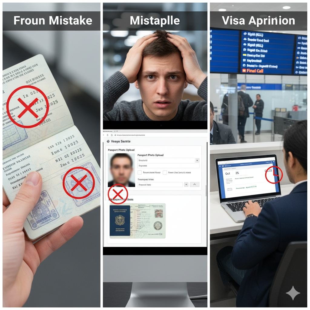 Uploading poor-quality scans/photos of passport or photo that don’t meet requirements (blurry, shadows, wrong format). Better to scan cleanly.