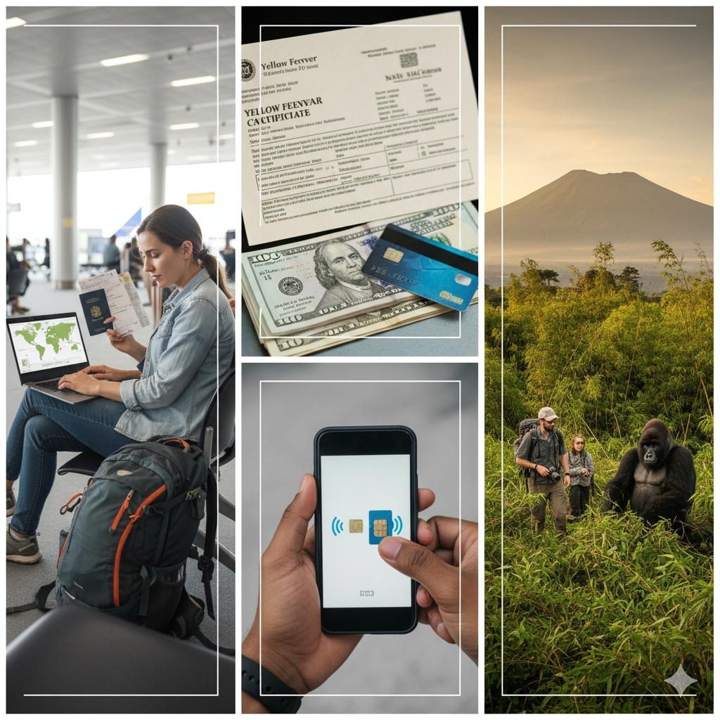 Money & currency: Bring cards, but also some US dollars or local currency (Rwandan Francs) for smaller payments.