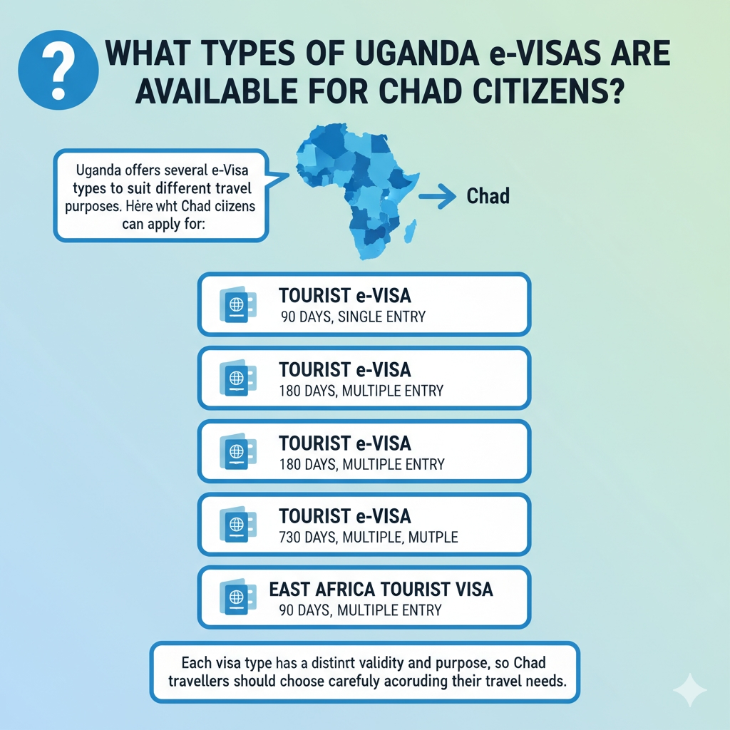 ❓ What Types of Uganda e-Visas Are Available for Chad Citizens?