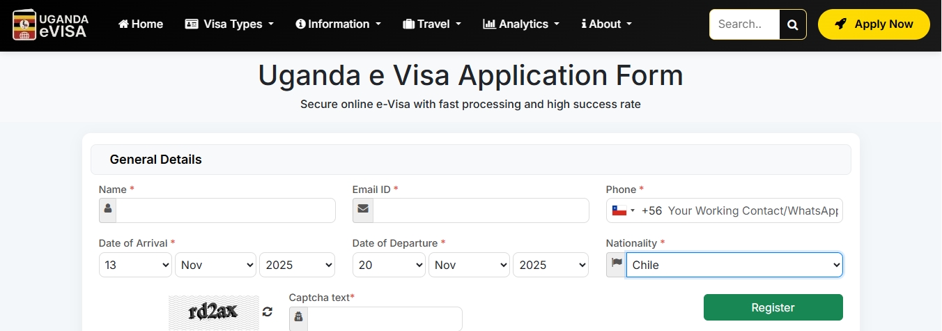 Yes, as a Chilean citizen, you can easily apply for an Uganda e-Visa Application Form online. The online application process is simple, convenient, and efficient. Here’s a detailed guide on how to apply for an Uganda e-Visa from Chile: