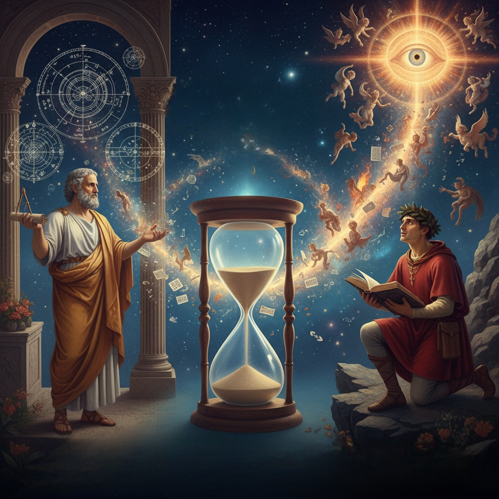Це холодна досконалість, логічна необхідність. Данте ж побачив у центрі найвищої сфери любов, що рухає сонце і зорі. У його візії телеологія набуває емоційного змісту. Космос прагне повернутись до джерела через почуття, що перевершує раціональне розуміння.