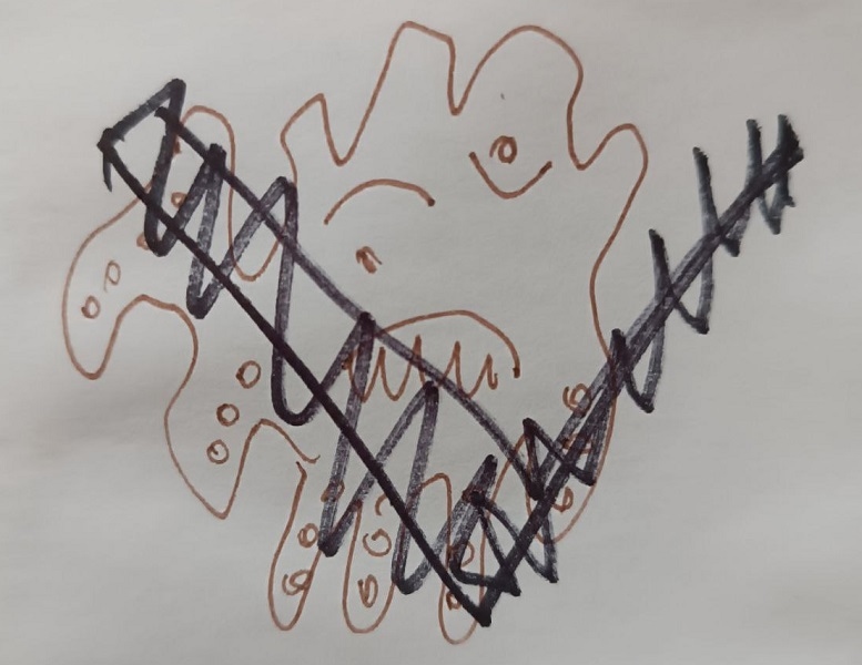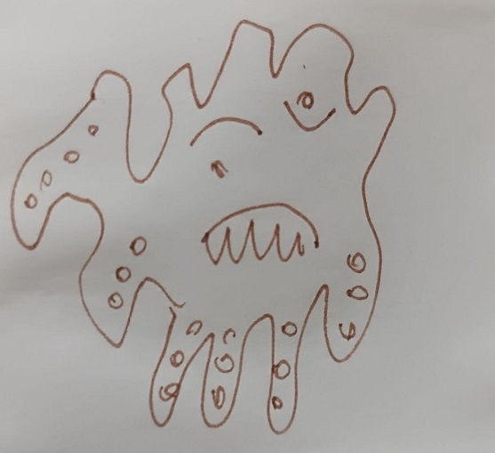 Коротко й швидко малюю в блокноті гидкого мікроба, підписую. Стає трохи легше — ну, недарма чимало психологів радять погані емоції промальовувати.
