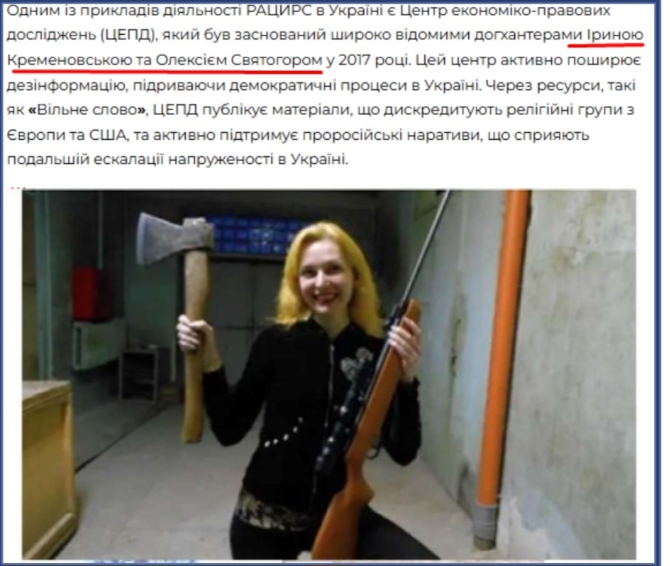Вона досі вештається по українських каналах ТБ, відволікає увагу людей та правоохоронних органів від основної мети: перемога над ворогом на неіснуючу “проблему сект та культів”.
