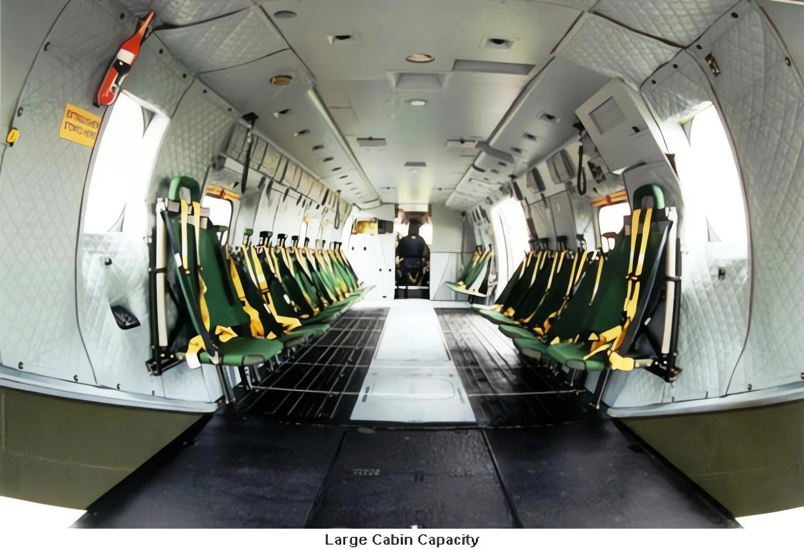 роблять його одним із найпотужніших у своєму класі. Вертоліт оснащений трьома турбовальними двигунами, що забезпечують високу тягу і запас потужності. Максимальна злітна маса перевищує 15 тонн, а дальність польоту може сягати понад 1300 км залежно від конфігурації. Швидкість польоту становить близько 270–300 км/год. Вантажна кабіна дозволяє перевозити до 30 військовослужбовців або значний обсяг вантажу. Екіпаж зазвичай складається з 2–4 осіб, залежно від місії. Вертоліт оснащений сучасною авіонікою, включаючи цифрову кабіну, автопілот і комплекс систем управління польотом.