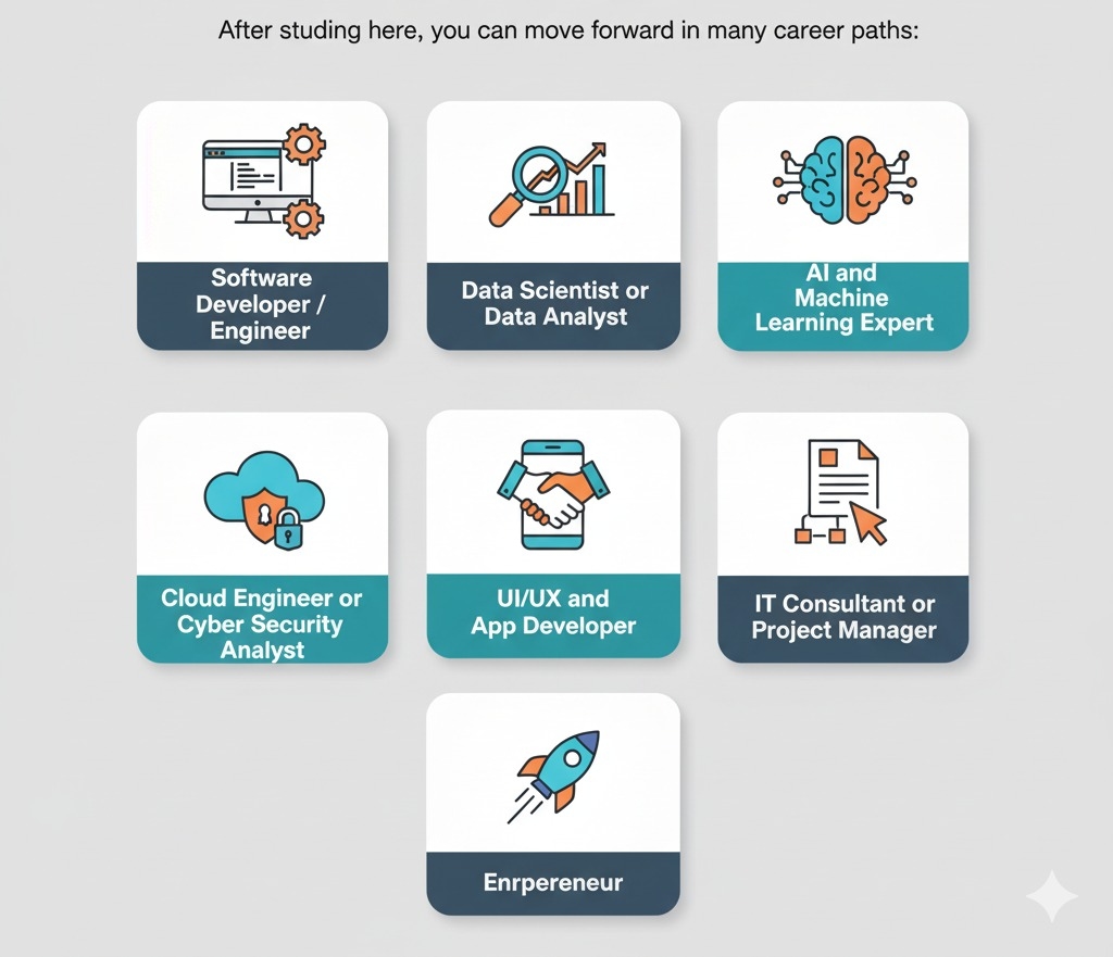 आज हर कंपनी अमेज़न वेब सर्विसेज (AWS), माइक्रोसॉफ्ट अज़ूर (Azure) या गूगल क्लाउड (Google Cloud) का उपयोग करती है। छात्रों को इन प्लेटफॉर्म पर काम करने का हैंड्स-ऑन (Hands-on) अनुभव दिया जाता है, जिससे वे डिग्री पूरी होते ही क्लाउड आर्किटेक्ट (Cloud Architect) या DevOps इंजीनियर के तौर पर तुरंत काम शुरू कर सकें।