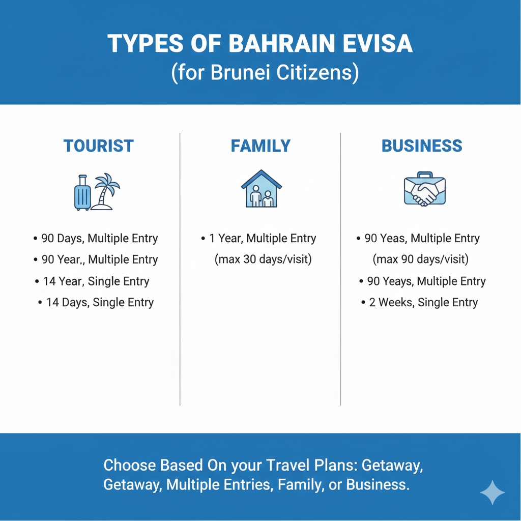 Which Types of Bahrain eVisa Are Available (According to Provided Data)