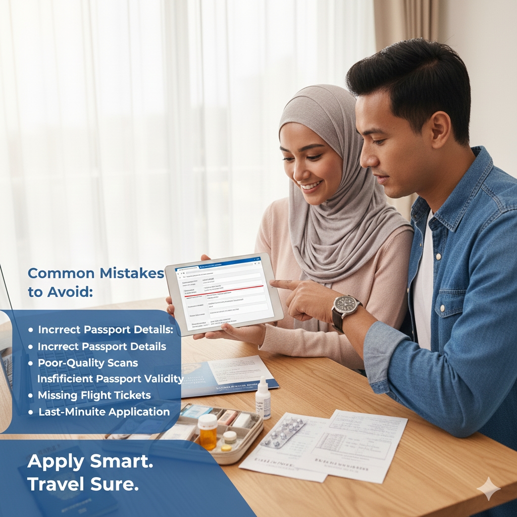 Even with a seemingly simple process, many travellers make avoidable mistakes — leading to delays or rejection. Here are common pitfalls: