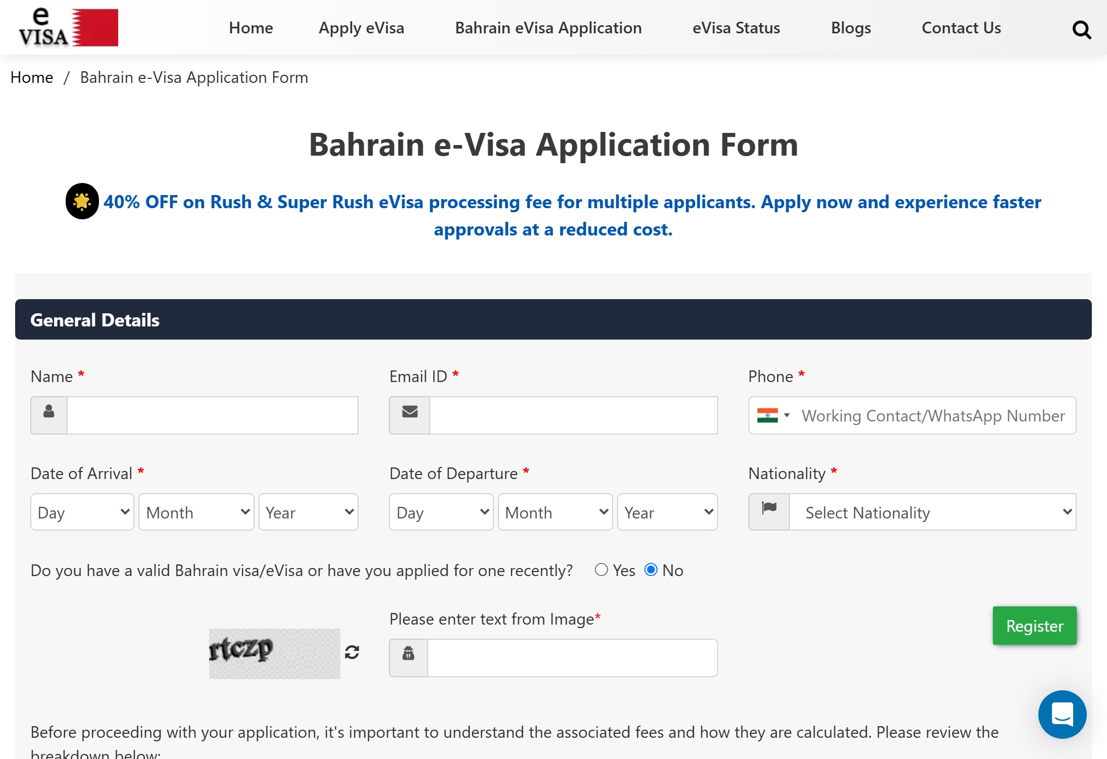 - Fill the Form: Complete the online application form with your personal information, travel dates, and address in Bahrain (your hotel's address).