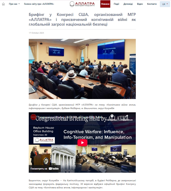 скрин: Джерело: https://allatra.org/uk/press-release/allatra-congressional-briefing-cognitive-warfare