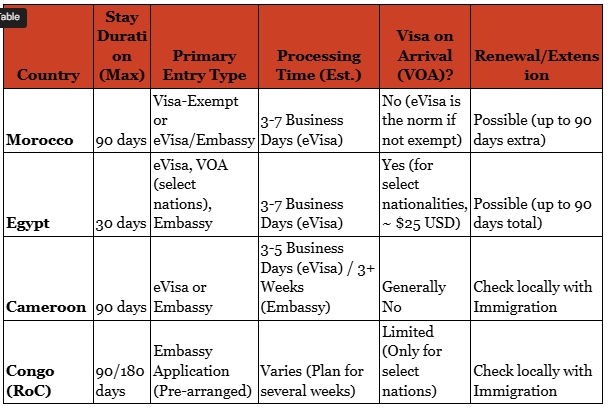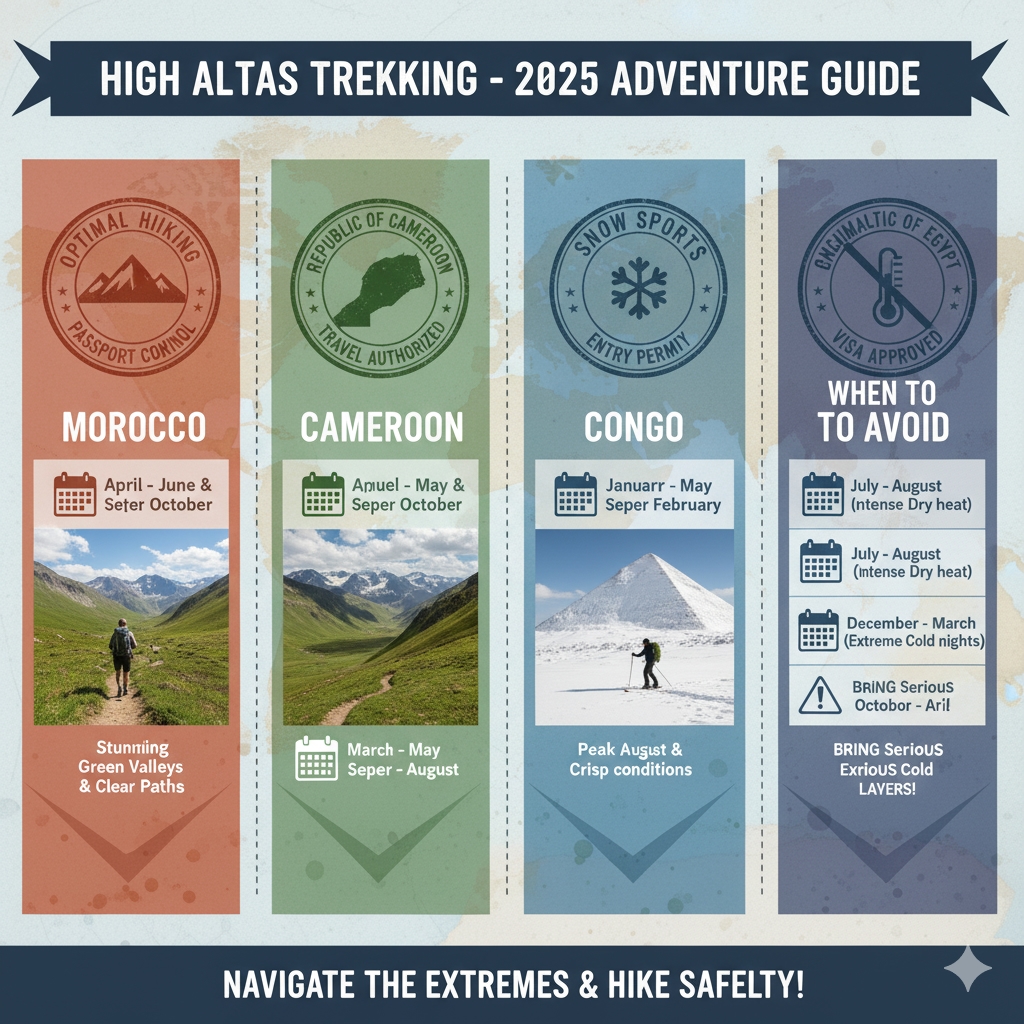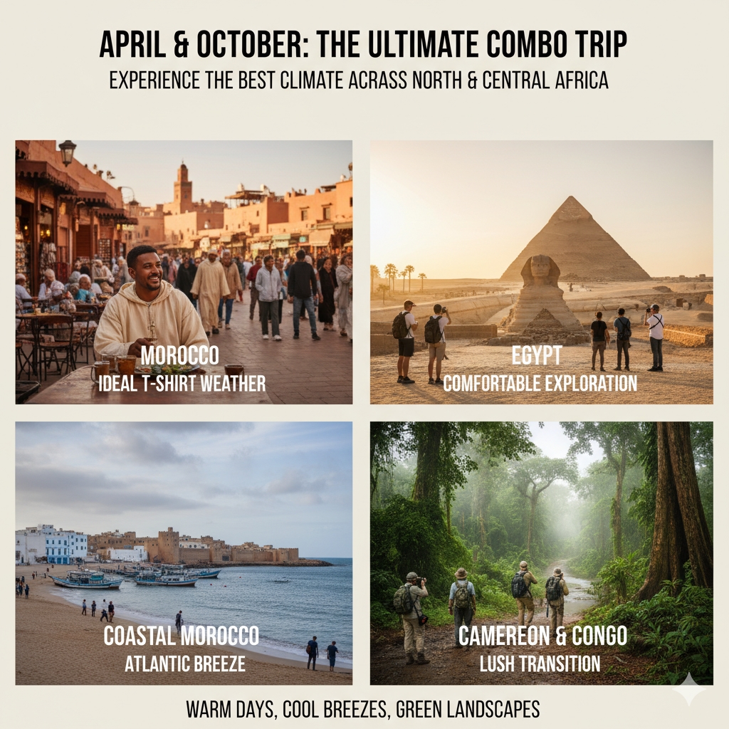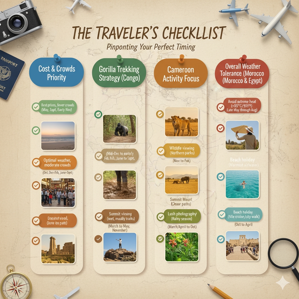 Ultimately, the best time for your 2025 African mega-trip depends entirely on what you want to achieve. If history and culture are calling, aim for the comfortable weather between October and April in Morocco and Egypt. If wildlife and intense hiking are your goals, you'll need to schedule Cameroon and the Congos during their respective dry seasons (typically December–February or June–September).But remember: aiming for those shoulder months of April and October is the simplest way to get that great blend of good weather and moderate crowds across all four incredible destinations. Happy planning!
