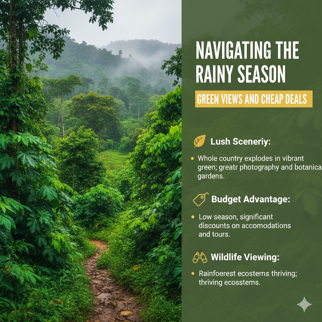 I prioritize lush, green photography, botany, and low-season discounts in the south, even with heavy rain. (Go during Rainy Season: March/April to October)