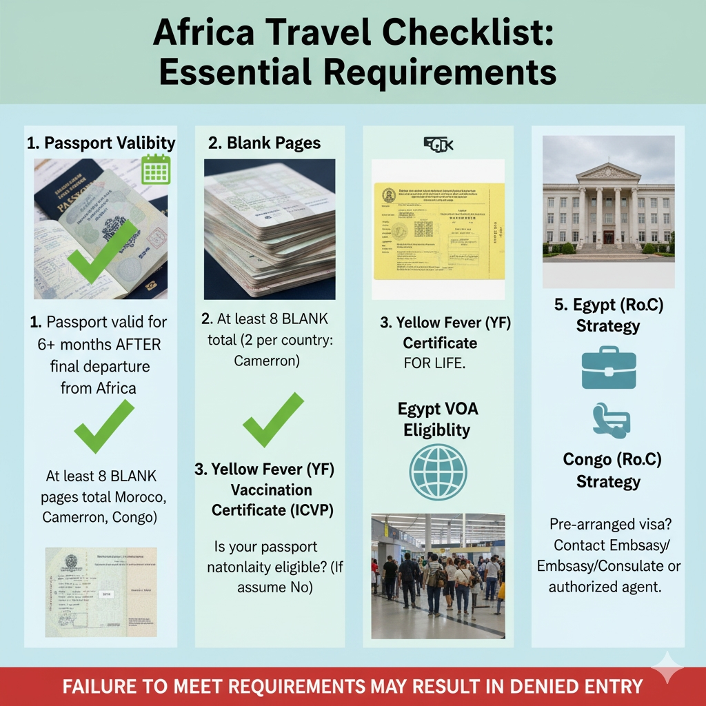 1.Passport Validity: Is your passport valid for at least 6 months after your final departure date from Africa?