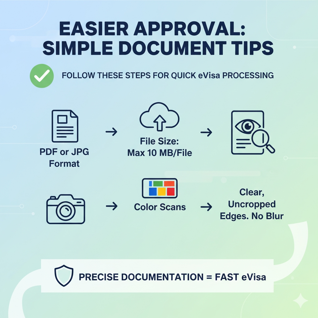 Ensure that all your documents are in either PDF or JPG format before uploading them. Also, they should be within the size limit of the file (normally 10 MB per file), and the scans should be in color and free from any blurriness or cropping of the edges.