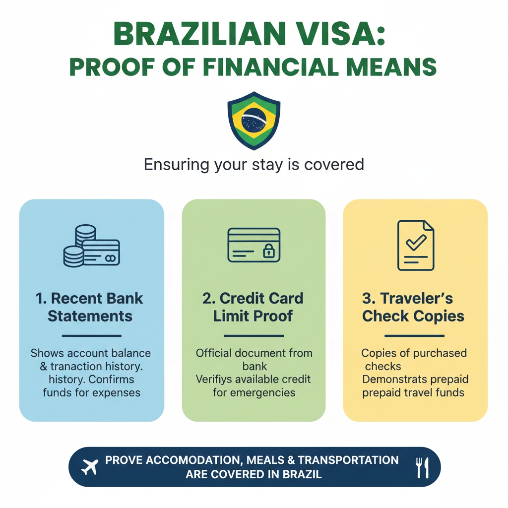 By doing this, you are proving that you will be able to pay for your accommodation, meals, and transportation while you are in Brazil.