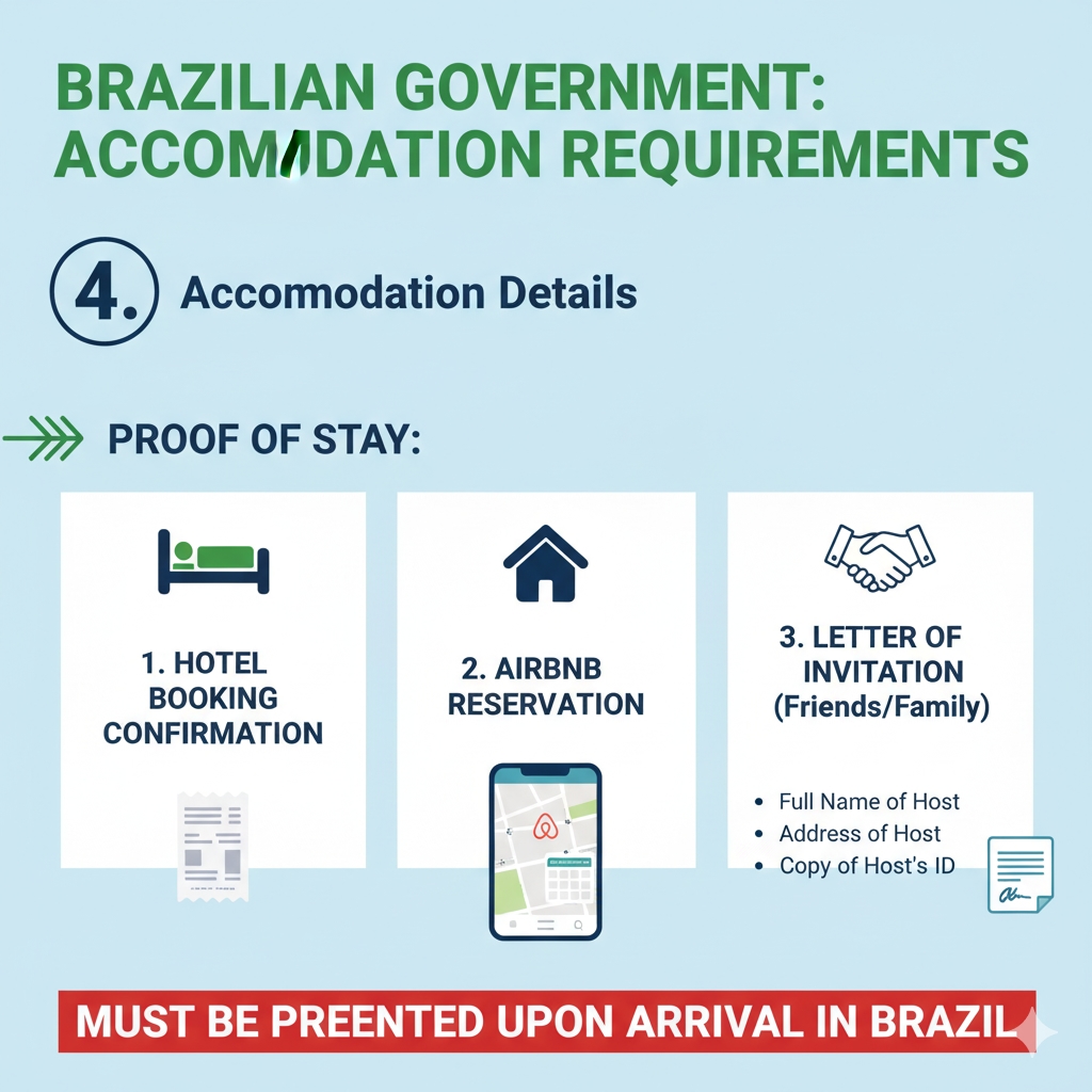 First of all, you have to prove to the Brazilian government where you will be staying: