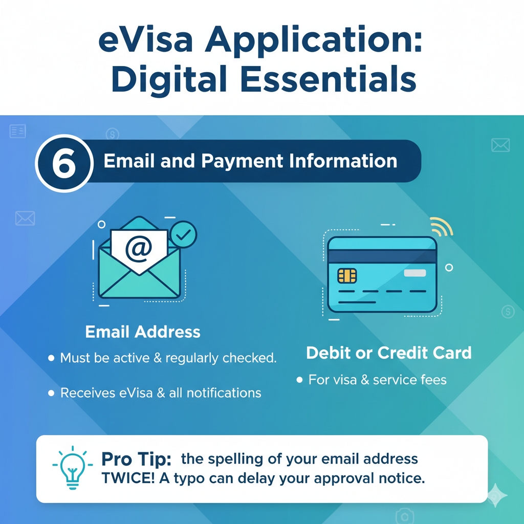 An email address in good working condition (and one that you keep checking regularly!)—your eVisa, as well as all notifications, will be communicated there.