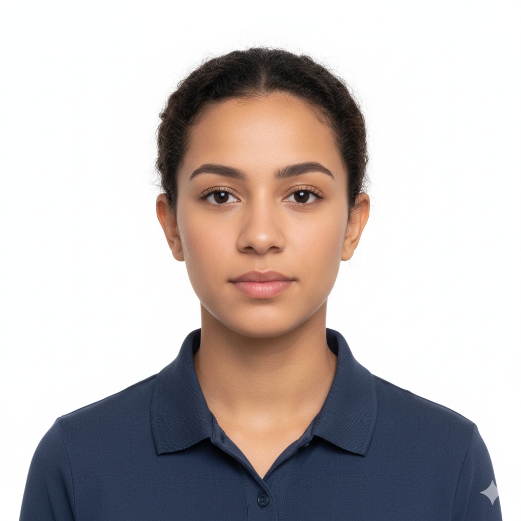 The photo should be a color one, with the face fully shown, and taken on a white background.