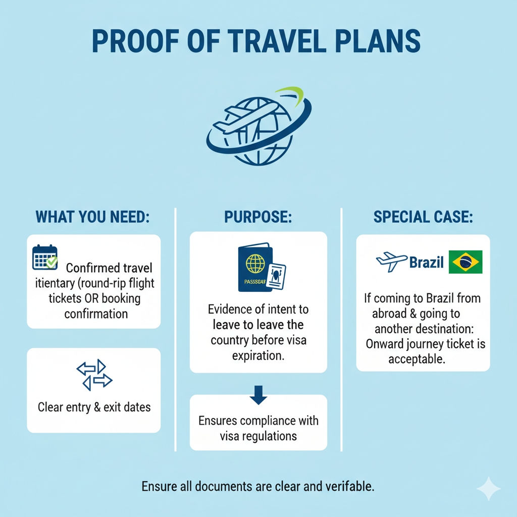 If you are coming to Brazil from abroad and you are going to another destination, a ticket for the onward journey will also be acceptable.