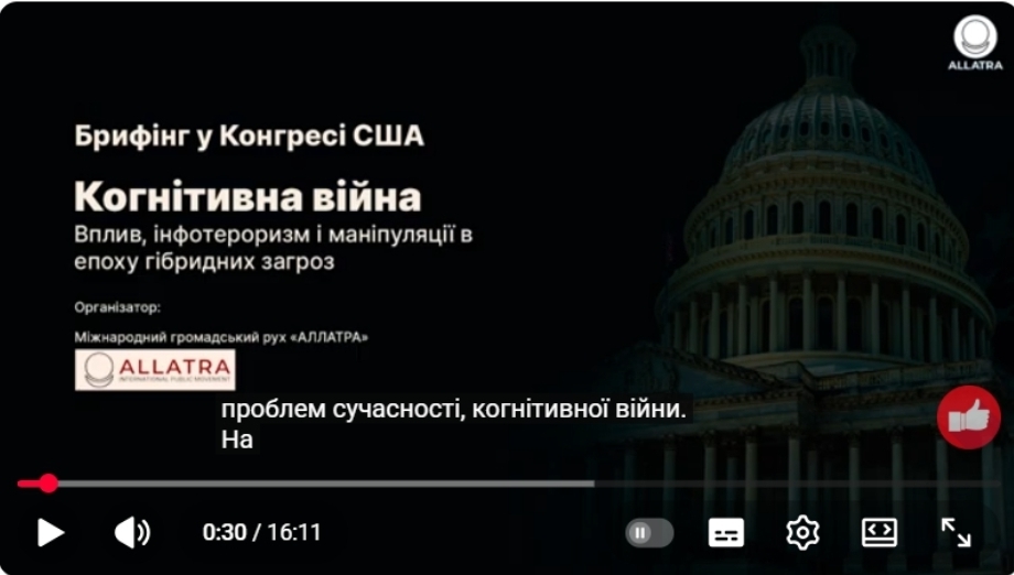 Брифінг у Конгресі | «АЛЛАТРА» на Капітолійському пагорбі: протидія когнітивній війні