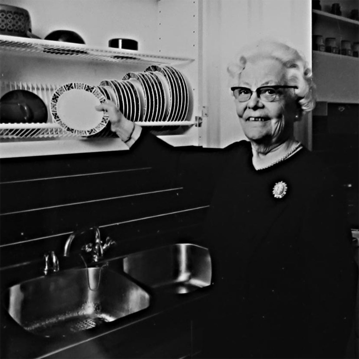 Звичайно ж, цінність комфорту та раціонального використання часу не оминула і сферу дизайну інтер'єру. Так, у 1944 році фінська винахідниця Майю Гебхард, будучи головою відділу домашнього господарства у Фінському інституті ефективності праці, запропонувала модель кухонної шафи для посуду, яка дозволяє економити зусилля на ручне миття та сушку посуду. Суть шафи полягає у відсутності дерев'яних поличок і дна, замість яких посуд ставлять на решітки, а вода стікає у раковину. За розрахунками розробниці, домогосподарки витрачали до 30 450 годин свого життя на миття посуду, а така сушарка береже до половини часу на домашні справи. Крім того, фіни запропонували встановлювати по дві раковини, що дозволяли б набирати мильну воду в одну чашу і споліскувати чистою в іншій, економлячи ресурс. Можливо, сьогодні це щось, що здається звичним і для українців, проте це лише доводить ефективність фінської прагматичності.