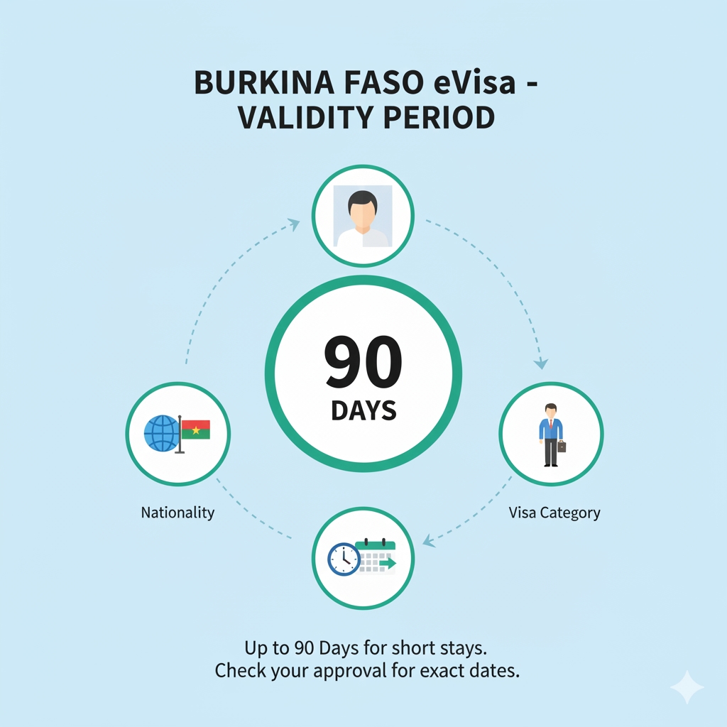 Extension policies for the eVisa are less clear and may depend on local authorities in Burkina Faso. Since the eVisa is primarily for short stays, the safest assumption is that you must respect the stay period granted (for example up to 90 days).